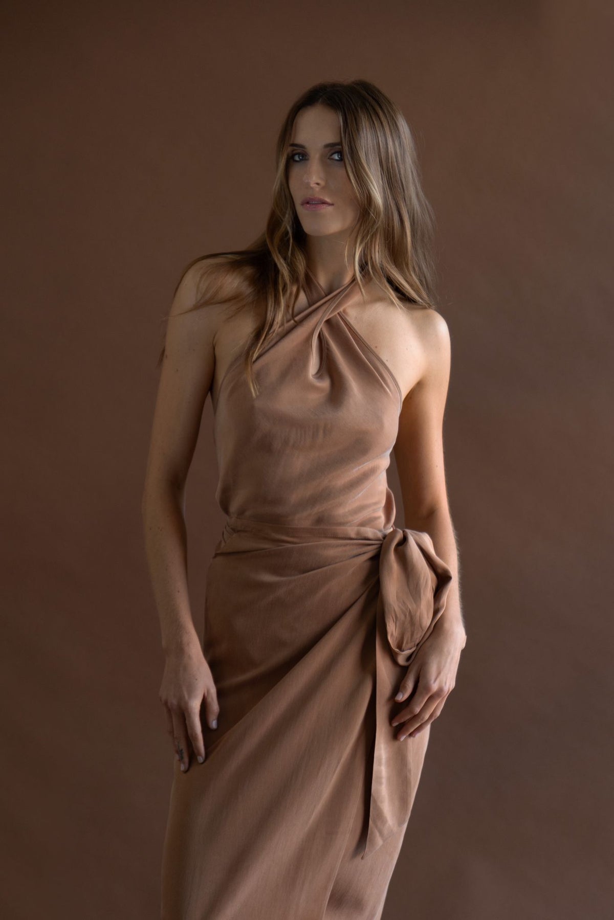 Pair your vegan silk wrap skirt with a sleeveless shirt or crop top for effortless daywear, or elevate with a halter top for evening. The adjustable wrap design flatters all body types, while the fluid fabric creates elegant movement.