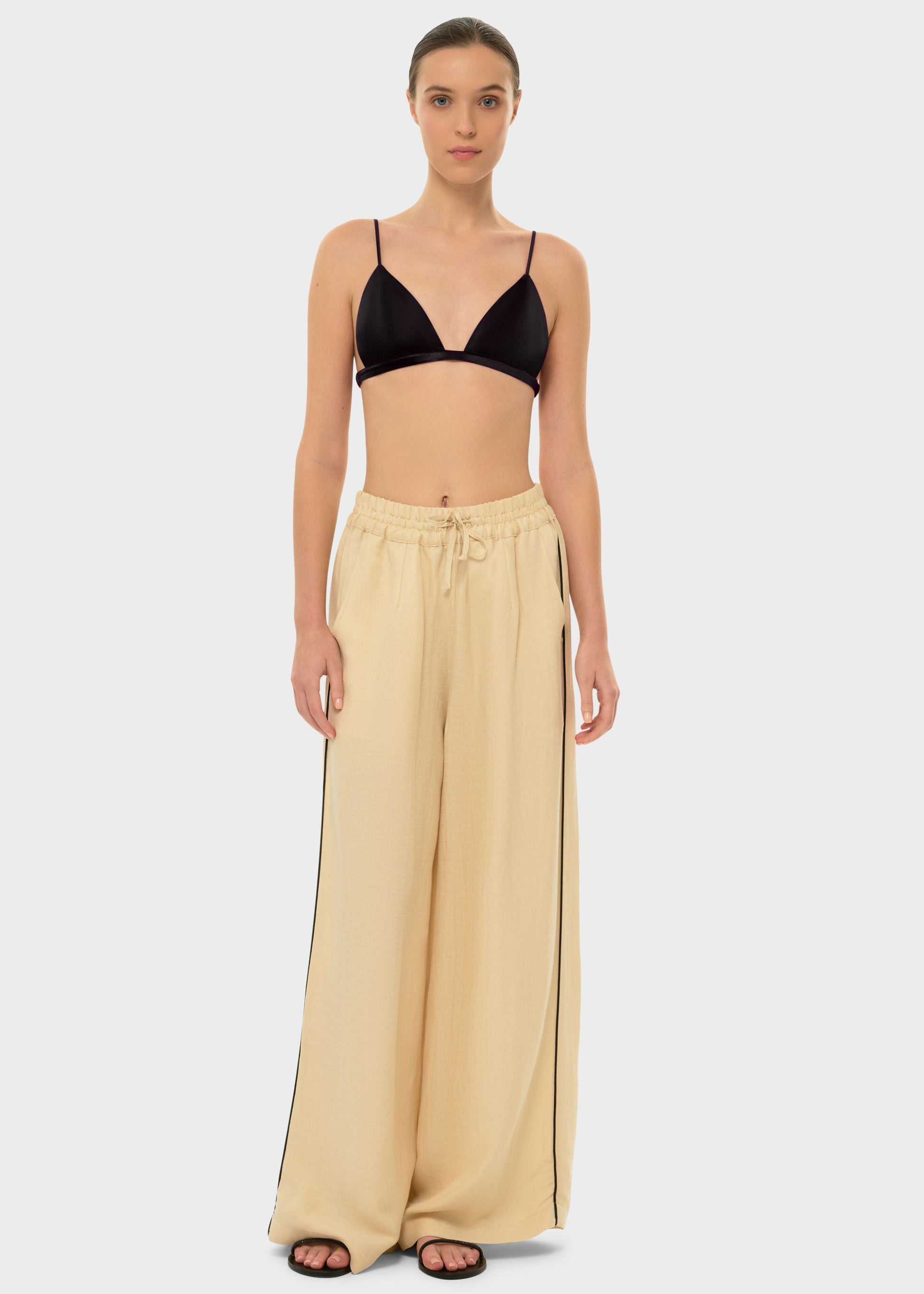 Experience the epitome of comfort and versatility with our Lounge Pants. Designed with an elastic tie waistband and side pockets, these pants offer ultimate comfort and functionality. The high-volume flared silhouette adds a stylish touch to your look.