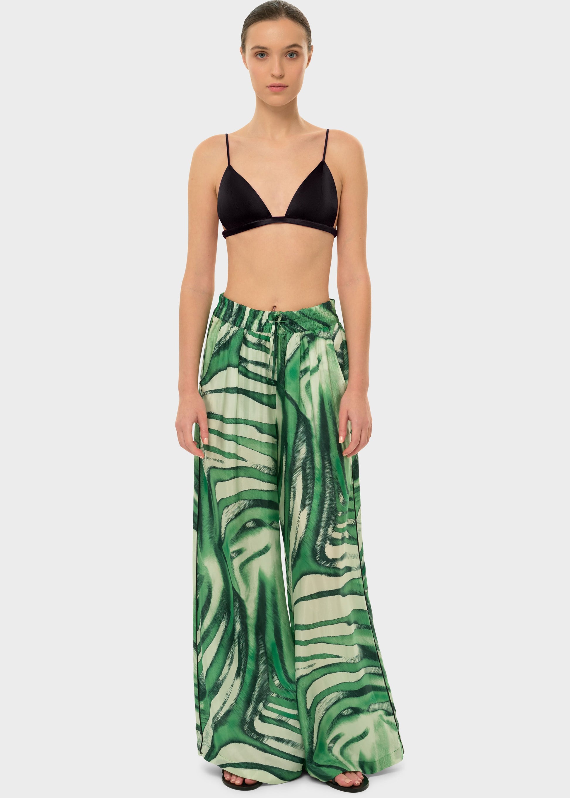 The niLuu vegan silk pants come in Small, Medium or Large and fit true to size. For reference, model is wearing size small and her measurements are: