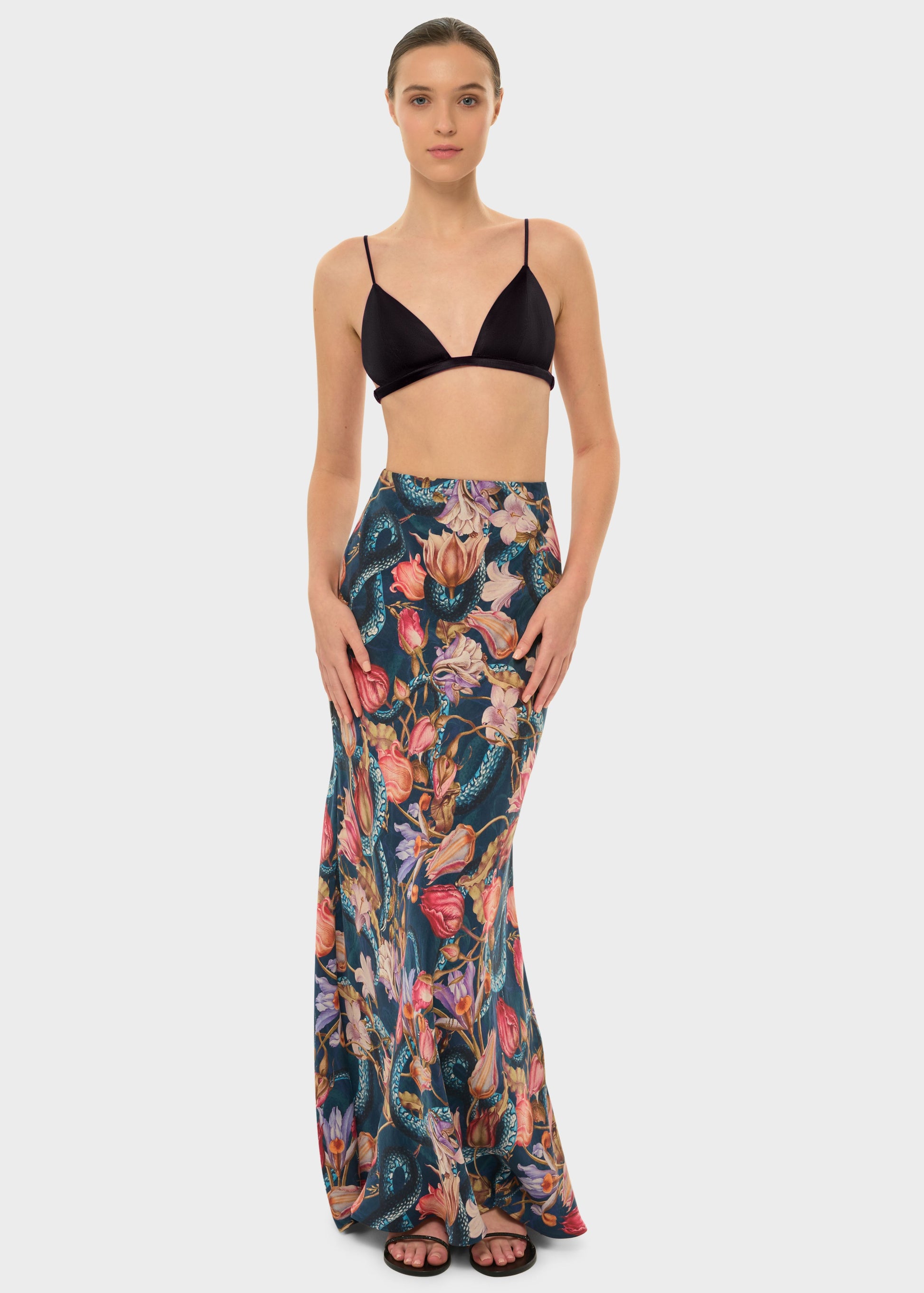 The niLuu vegan silk Slip Skirt comes in Small, Medium, and Large and fits true to size. For reference, model is wearing a size Small, and her measurements are: