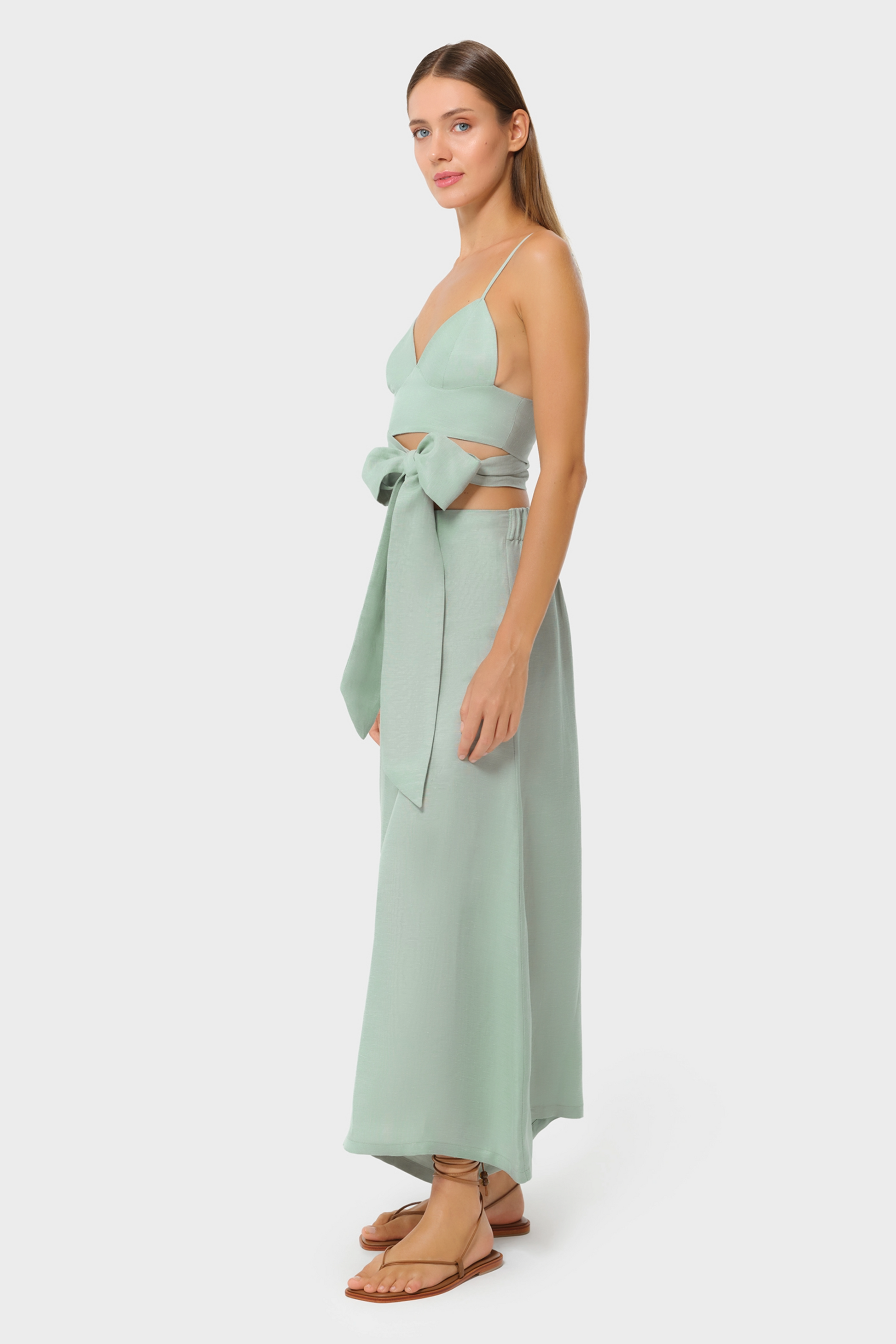 A fun and flirty piece from The Mythos Collection, this reimagined bralette offers a modern twist on a timeless silhouette. Defined by its refined design, the Bralette has adjustable spaghetti straps and features a long tie that that wraps elegantly around the bodice and can be styled in multiple ways. The fitted front panel is fully adjustable via the tie, ensuring both comfort and a flattering fit for many occasions. We recommend pairing this piece with the matching Lounge Pants for a fun and flirty look, or with the Palazzo Pants for more feminine allure.