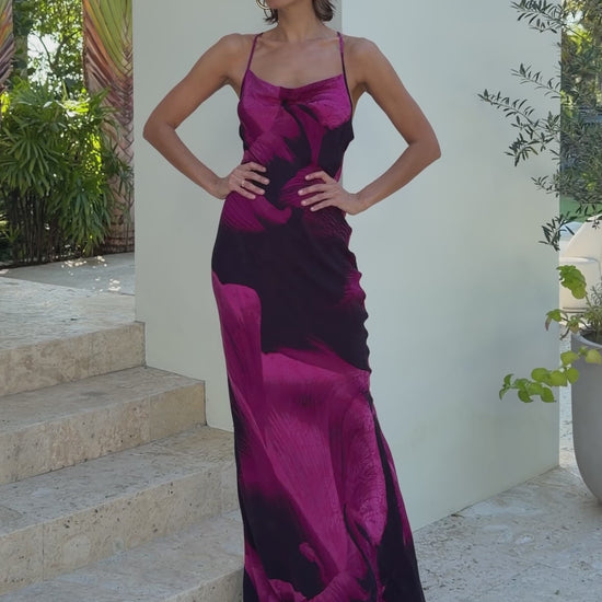 Yes. The bias-cut silhouette, draped neckline, and elegant length make this slip dress ideal for evening occasions, formal dinners, and special events. Its refined print and fluid movement create a striking yet effortless look.