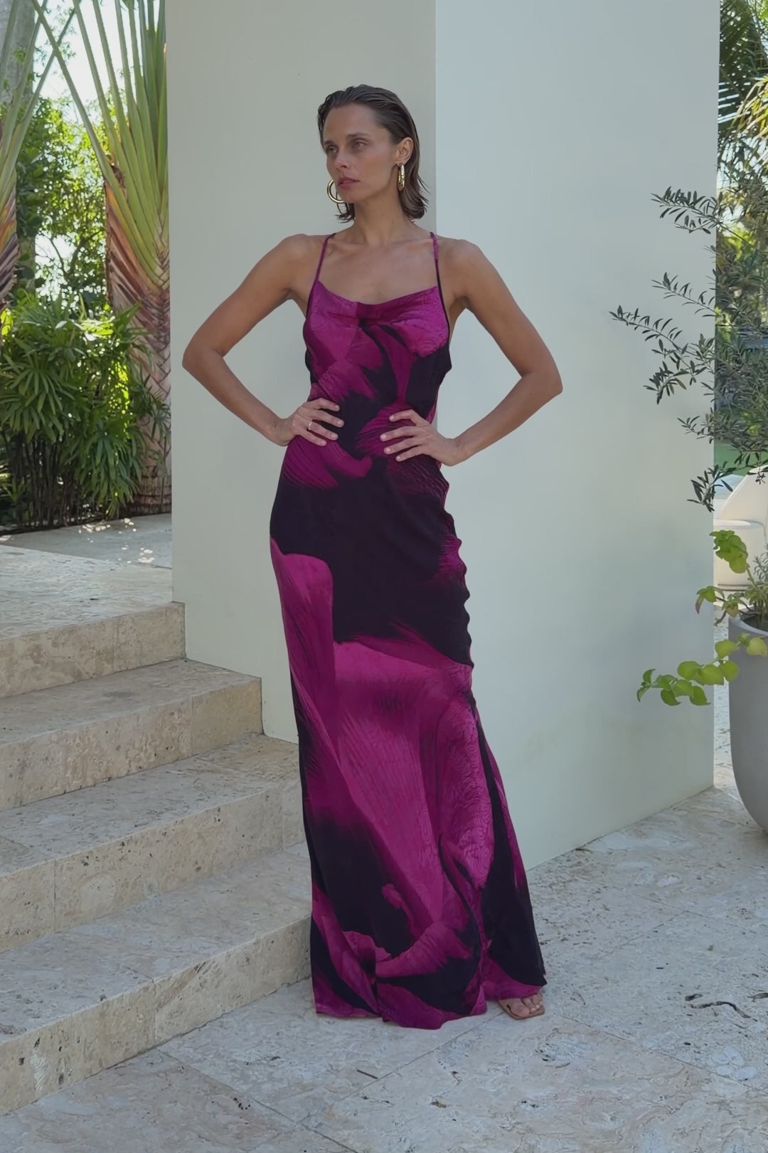 Experience modern sophistication with a touch of sensuality in our Calypso Scarlet Slip Dress. This bias-cut slip beautifully accentuates your natural silhouette with every movement. It is designed for both glamorous occasions and versatility. It features a draped neckline, adjustable cross-back spaghetti straps, and a delicate flare for a touch of drama. By pairing this slip with its matching Artemis Cape, you would be ready for any glamorous event, or style it alone as a statement piece.