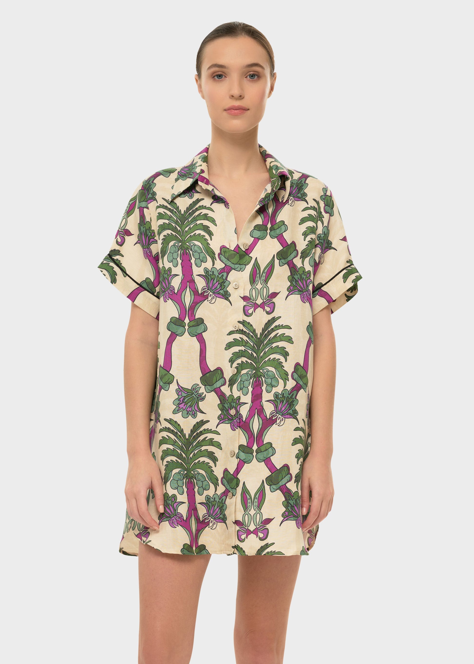 A classic and effortless button down blouse crafted for utmost elegance. The AquaFlora button down is designed with a slim relaxed fit, functional buttons and collared neck. As well as piping detail on the side seam and sleeve cuff.